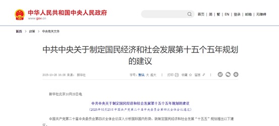 10月28日,《中共中央關(guān)于制定國民經(jīng)濟和社會發(fā)展第十五個五年規(guī)劃的建議》(以下簡稱“建議”)正式發(fā)布。