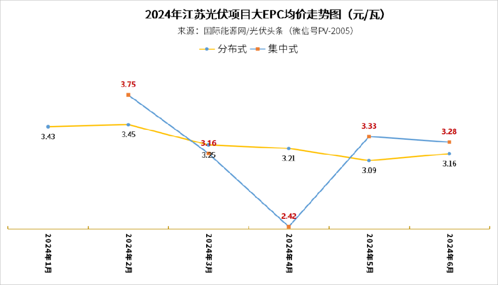 國際能源網/光伏頭條(PV-2005)長期跟蹤光伏EPC招投標市場。2024年以來,隨著光伏組件價格穩定在0.8元/W左右,光伏EPC價格基本維持在3元/W左右。