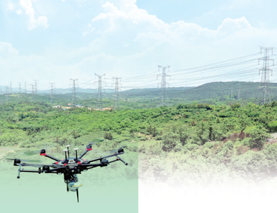 國網江蘇省電力公司運用無人機進行線路及周邊環境巡檢。